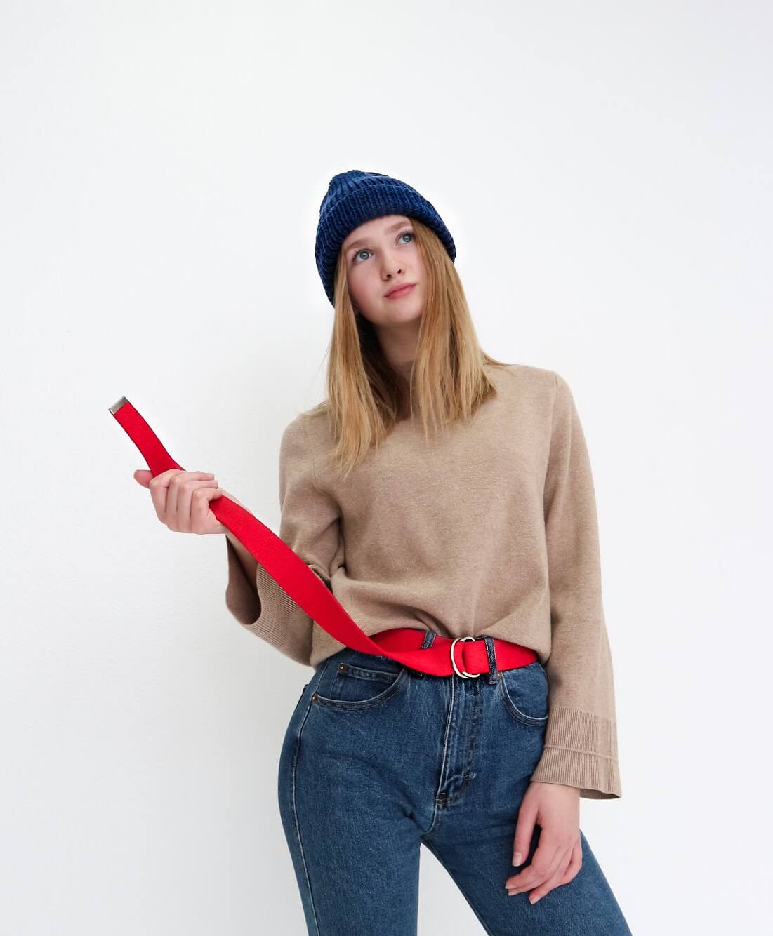 Очень прочный, хлопковый ремень шириной 3 см и длиной – 125 см.