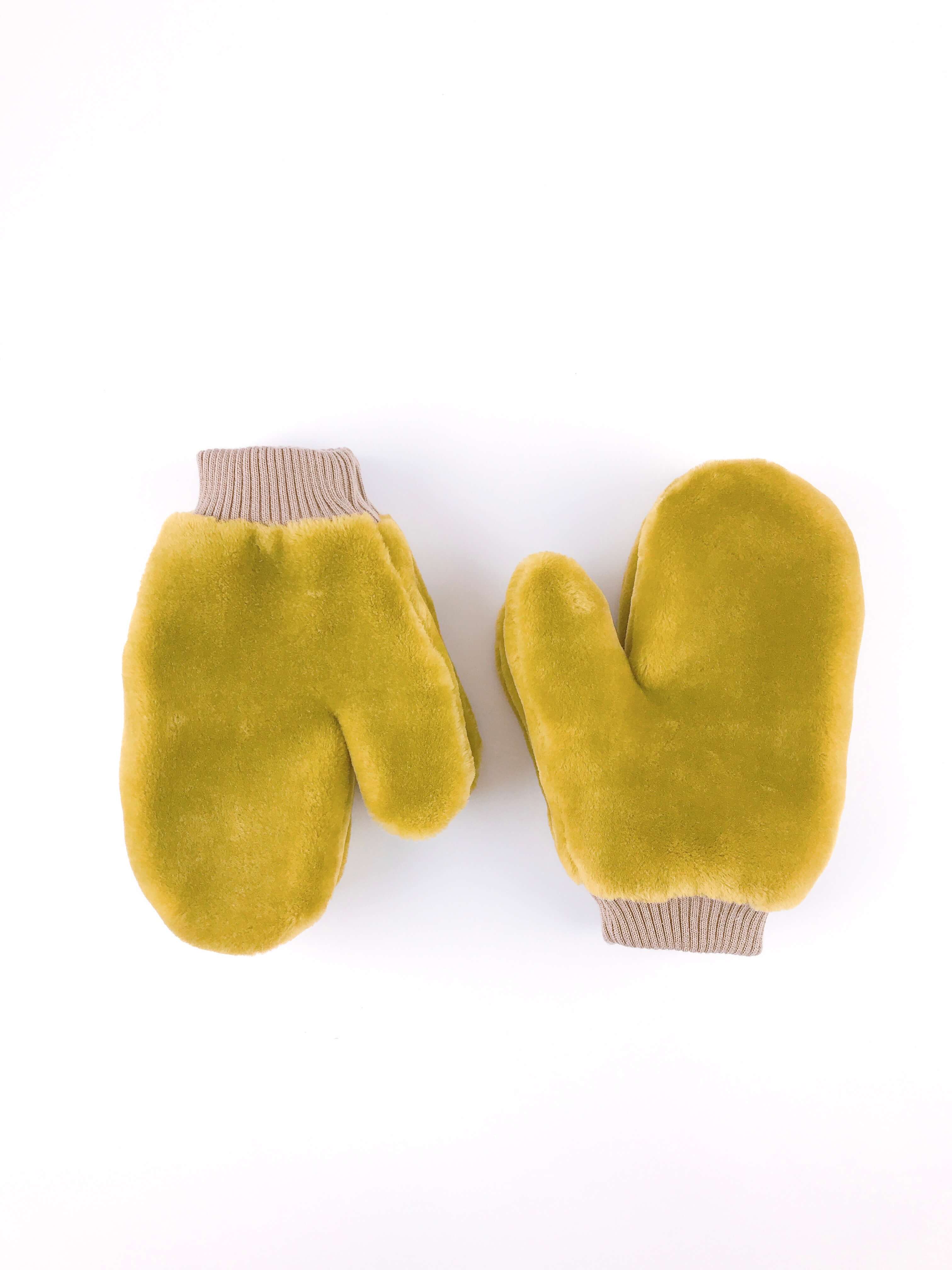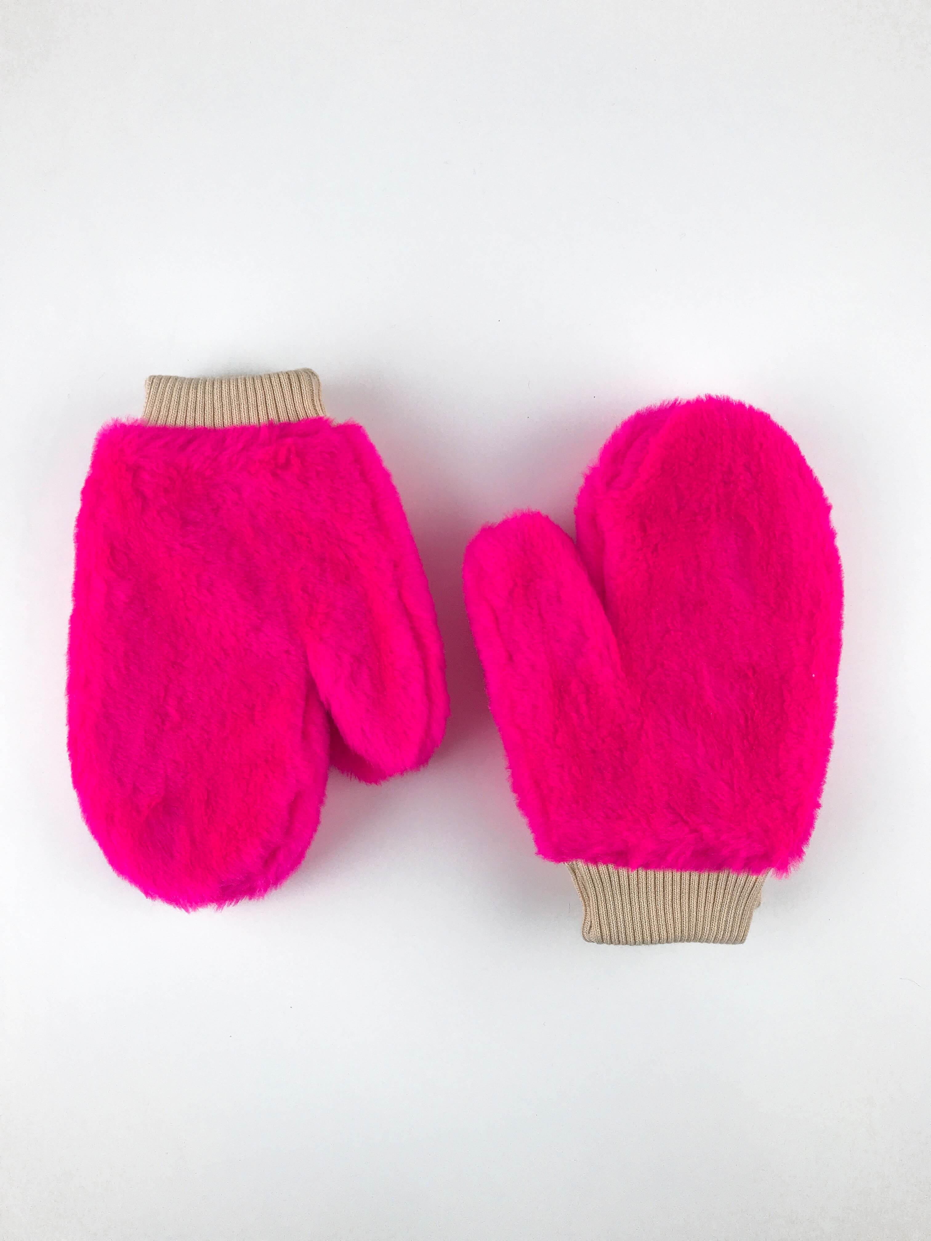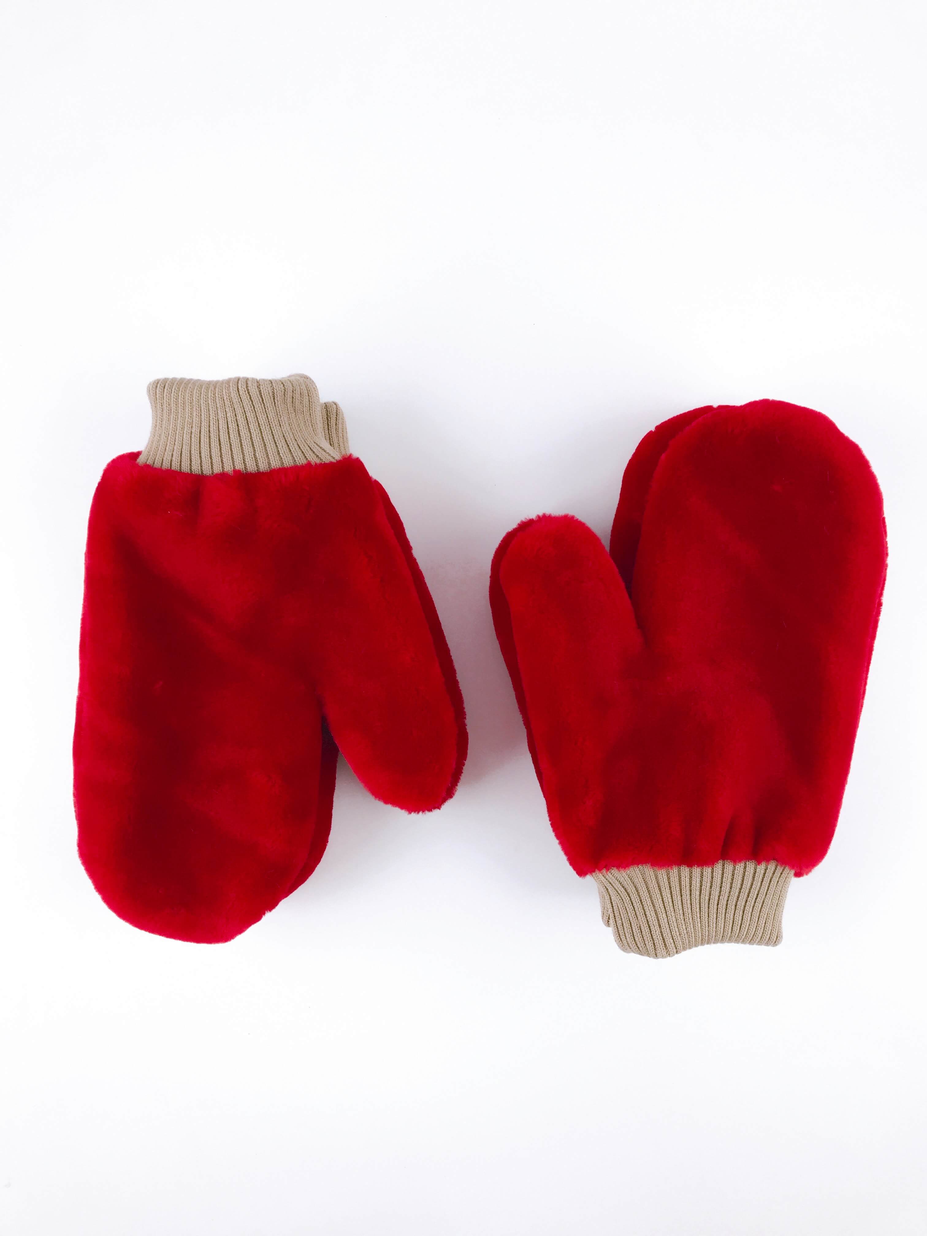 Варежки из мягкого искусственного меха с трикотажным манжетом и трикотажной подкладкой.