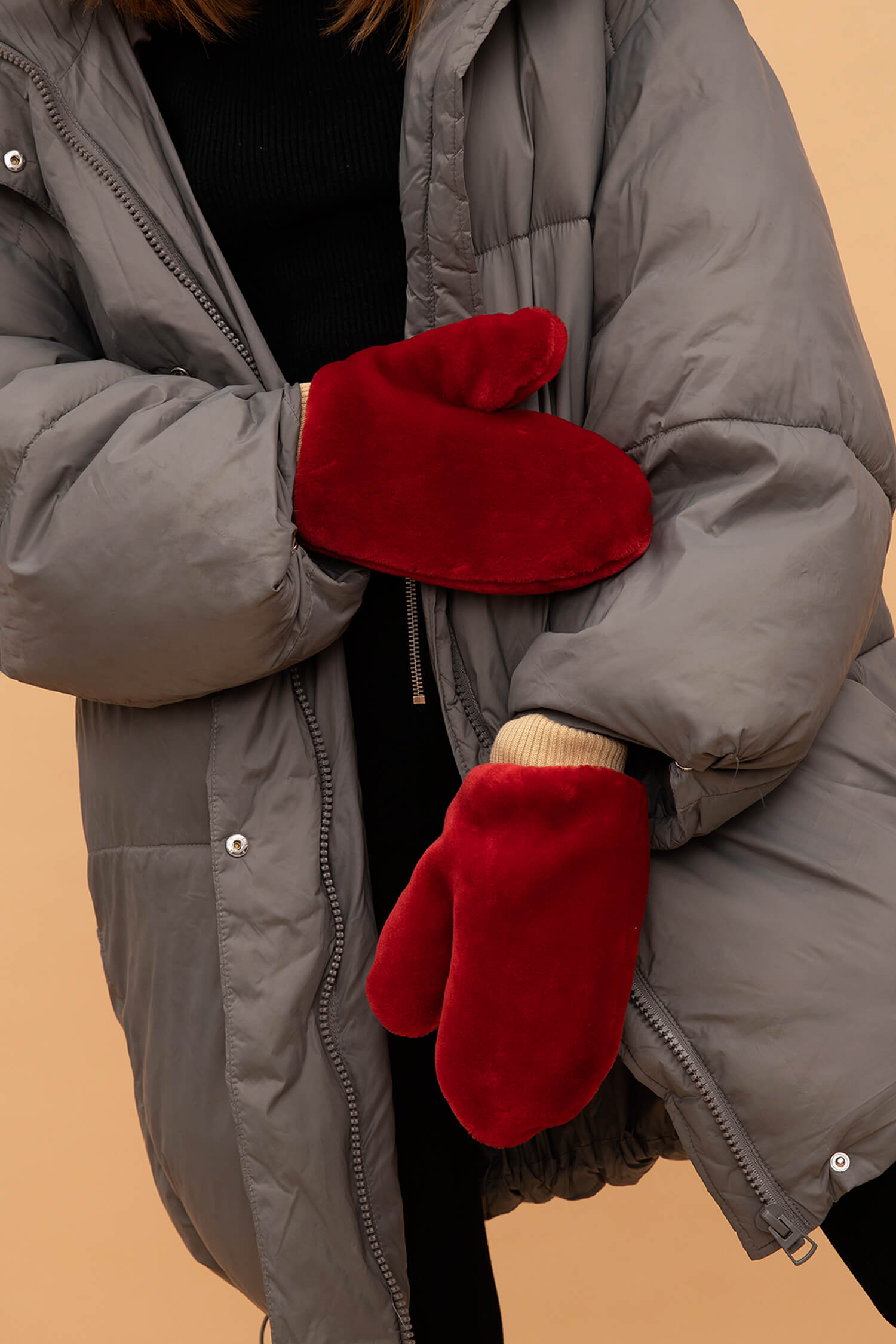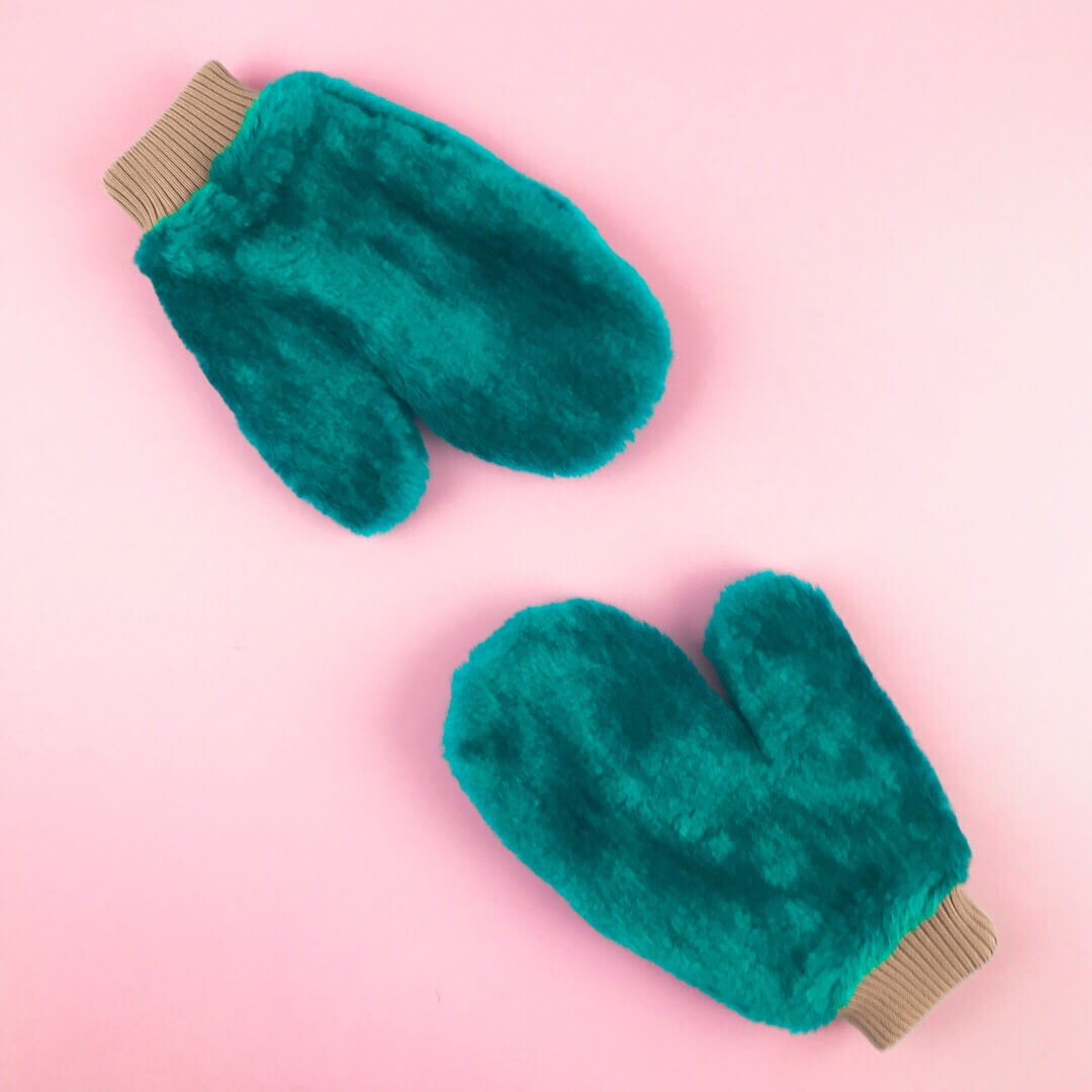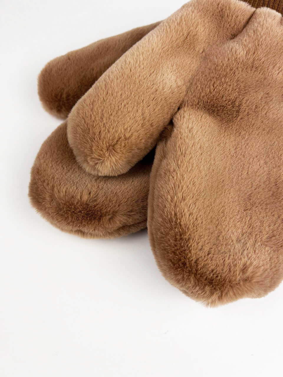 Варежки из мягкого искусственного меха с трикотажным манжетом и трикотажной подкладкой.